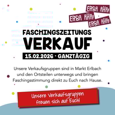 Jedes Jahr am Faschingssonntag ziehen unsere Verkaufsgruppen durch Markt Erlbach und die Außenorte und verkaufen den Faschingskurier. Jede Ausgabe ist eine bunte Sammlung aus lustigen Begebenheiten die sich im vergangen Jahr in Markt Erlbach zugetragen haben. Tatkräftige Unterstützung erhalten wir dabei von unseren Freunden der Cones des JCEW Markt Erlbach und dem TSV Markt Erlbach. Die lustig glossierten Beiträge für den Faschingskurier können ganzjährig und anonym in den Briefkasten an der Komiteeburg eingeworfen oder auch über das Formular auf dieser Seite an uns geschickt werden.